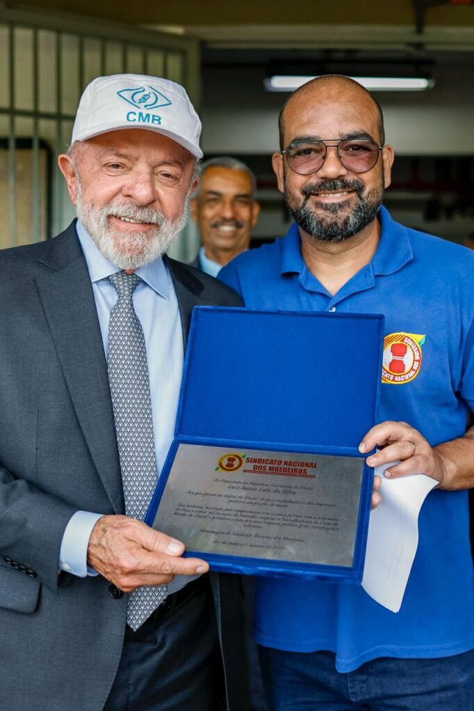 Durante a visita, o Sindicato Nacional dos Moedeiros realizou a entrega de uma placa comemorativa e de uma carta institucional ao presidente Luiz Inácio Lula da Silva. O gesto simboliza o reconhecimento da categoria às políticas públicas implementadas ao longo dos governos Lula, que contribuíram diretamente para a inclusão social, a geração de empregos, o fortalecimento das empresas públicas e a ampliação de direitos trabalhistas.