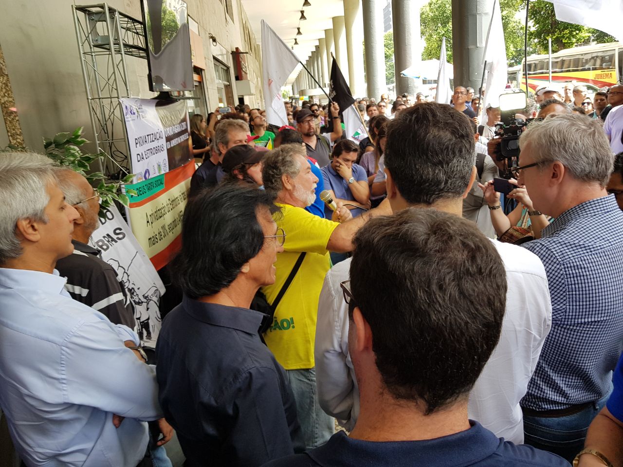 Os trabalhadores moedeiros e seu sindicato marcaram presença no Dia Nacional de Luta e Mobilização contra a Privatização que se concentrou na porta da Eletrobrás.