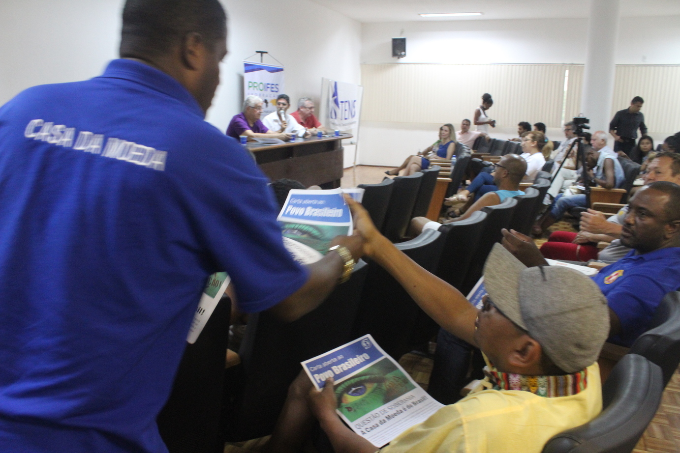 O Sindicato Nacional dos Moedeiros participou do debate Ciência, Tecnologia e Soberania com o senador Roberto Requião e o ex-ministro Celso Pansera. Participaram da mesa o senador Roberto Requião (PMDB-PR), o deputado federal Celso Pansera (PT-RJ), a presidente do Atens-Sidicato, Maria do Rosário Alves de Oliveira, o presidente do PROIFES-Federação, Nilton Brandão e a vice-presidenta da entidade, Luciene Fernandes.